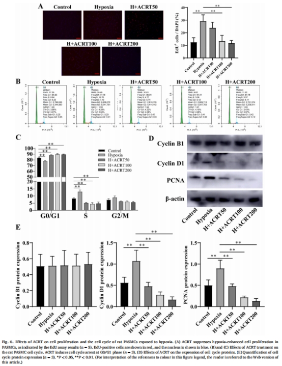研究意義:證實(shí)ACRT通過(guò)阻滯細(xì)胞周期抑制PASMCs增殖,為HPH血管重塑提供治療靶點(diǎn)。