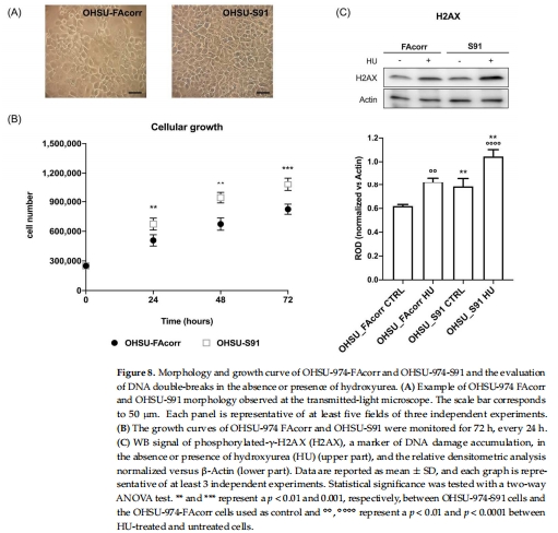 DNA損傷累積:雙鏈斷裂標(biāo)志物γ-H2AX表達(dá)增加(圖8C),與FA患者的HNSCC高侵襲性相關(guān)。