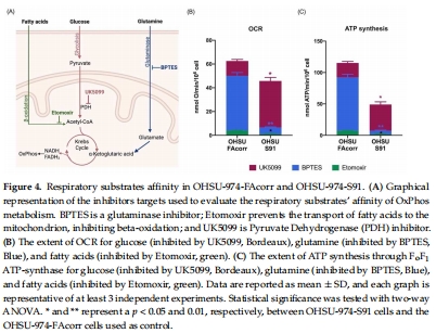 OHSU-S91的OCR為40 nmol O?/min/10?細(xì)胞(與OHSU-FAcorr相當(dāng)),但ATP合成量僅為對照的50%(圖1B)。