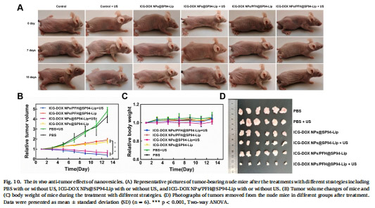 協同治療:超聲(US)觸發下,化療-SDT聯合使腫瘤體積抑制率達90.52%(圖10B)。