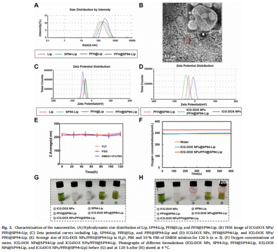 對比ICG-DOX NPs@SP94-Lip(無PFH)與ICG-DOX NPs/PFH@SP94-Lip(含PFH)的溶解氧差異(圖3F)。