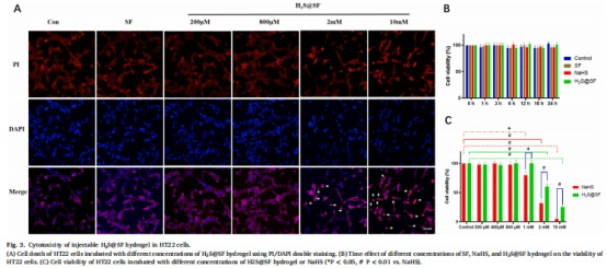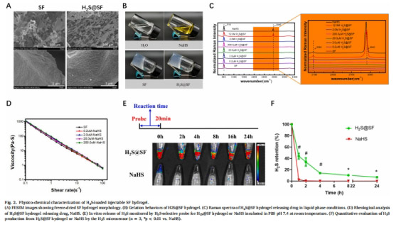 SF水凝膠負載NaHS(H?S供體),濃度優(yōu)化(0.2-2 wt%)。