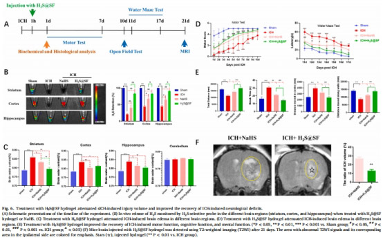 本研究開發(fā)了一種負載硫化氫(H?S)的可注射絲素蛋白水凝膠(H?S@SF),通過立體定位注射治療小鼠嚴重腦出血(ICH)。核心發(fā)現(xiàn):