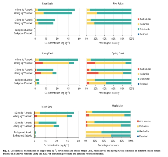 ? 數(shù)據(jù):缺氧條件下River Raisin沉積物中可氧化態(tài)Cu占比>90%(vs. 低氧77%),證實(shí)OM促進(jìn)Cu向硫化物/有機(jī)結(jié)合態(tài)轉(zhuǎn)化。