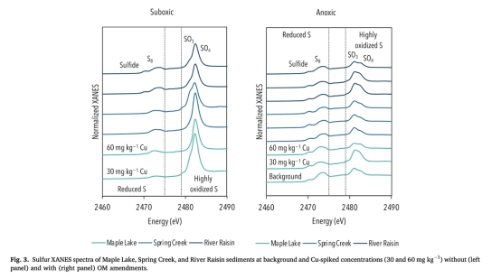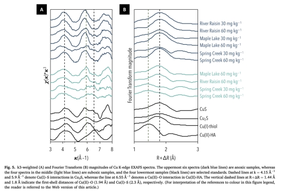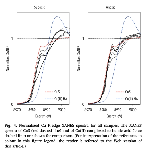? 數(shù)據(jù):EXAFS擬合顯示缺氧樣品中Cu-S鍵長(zhǎng)~2.33 ?(對(duì)應(yīng)CuS),低氧Spring Creek樣品含50% Cu(II)-有機(jī)絡(luò)合物。