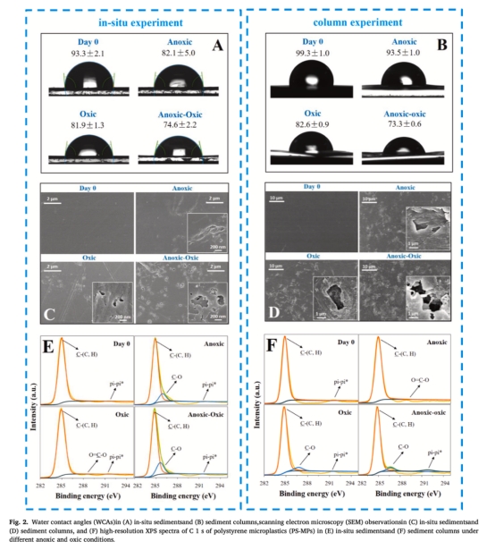 1. 揭示不同氧化還原條件(靜態缺氧/有氧 vs 交替缺氧-有氧)對沉積物中PS-MPs老化的影響差異