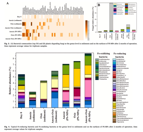 2. 核心機制:鐵還原菌(如Geobacter)驅動Fe(II)/Fe(III)循環,通過Fenton反應產生·OH,直接氧化降解PS-MPs