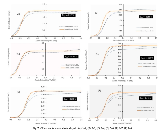 3. 關(guān)聯(lián)分析:結(jié)合CV曲線(圖7)與Nernst-Monod模型,驗(yàn)證K_{\text{bio}}對電子傳遞動(dòng)力學(xué)的調(diào)控作用。
