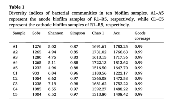? 意義:COD/N顯著改變陰極菌群多樣性(Shannon指數R3:7.19 > R5:6.52),但陽極菌群結構穩定。
