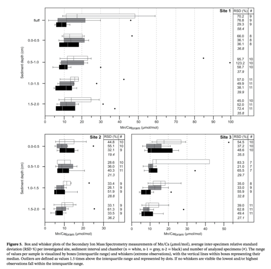 3. 有孔蟲殼體Mn/Ca比值(圖5):