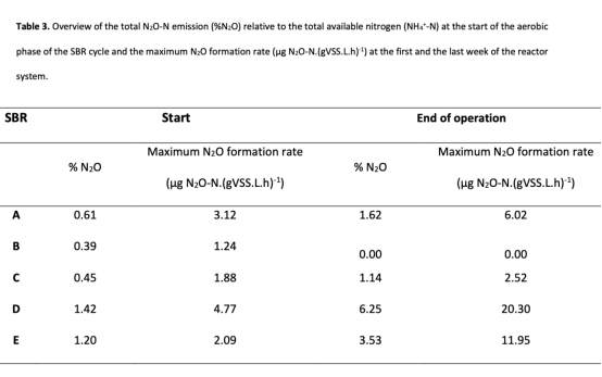 2. 代謝路徑關聯:非VFAs系統(SBR B)未檢測到N?O,結合其低DOC厭氧攝取(51.5%)和高COD泄漏,證實氨基酸系統通過異養反硝化實現N?O零積累,為工藝選擇提供減排依據。