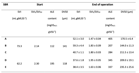 ? 所有系統DV50增大(141→235μm)、SVI降低(73.3→38.4 mL·gMLSS?1),證明復雜底物不影響顆粒化進程。