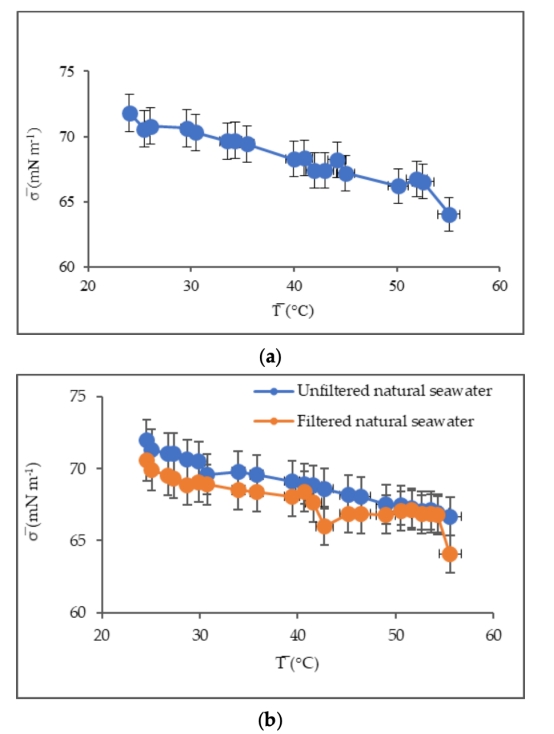 ? 數據:溫度升高(24°C→55°C)使去離子水表面張力從72降至64 mN m?1;人工表面活性劑(2000μg L?1)使張力降至48 mN m?1(Triton-X-100)和38 mN m?1(油醇)。