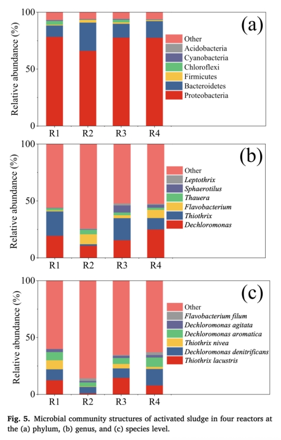 2. 減排機制關聯(lián):結合批式實驗(圖3b),區(qū)分硝化/反硝化過程的N2O貢獻,證明45 mT SMF對硝化過程N2O減排效果最顯著(因抑制AOB的硝化菌反硝化途徑)。