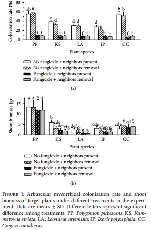 沼澤植物群落中植物-植物相互作用的叢枝菌根真菌介導