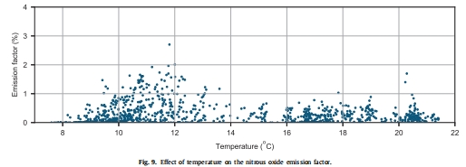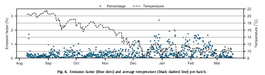結果:溫度<14°C時排放因子變異性增大(0-2.5%)。
