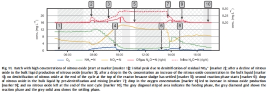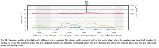技術亮點:結合 液相N?O傳感器(Unisense) 與尾氣分析,首次揭示AGS工藝中N?O動態產生/消耗機制(圖11)。