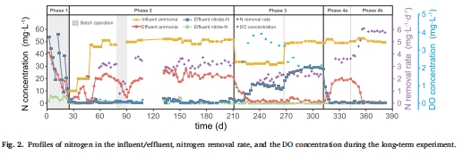 數據:Phase 4b氨氮去除率100%,總氮去除速率5.84±0.05 mg·N·L?1·d?1。