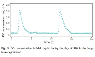 高精度DO控制:Unisense DO微電極(型號DO25)提供秒級分辨率數據(圖3),精準捕捉間歇曝氣期間的DO動態(0.1–1.6 mg·L?1)。