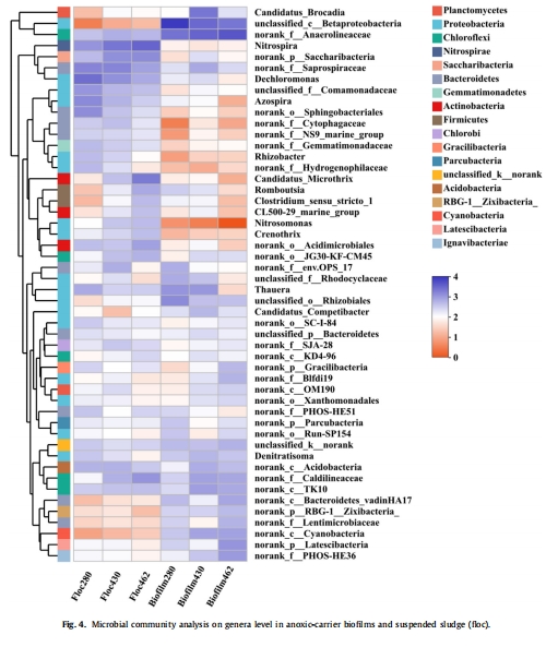 數據:懸浮污泥流失后,生物膜中anammox豐度從0.74%升至4.34%(P<0.001)。