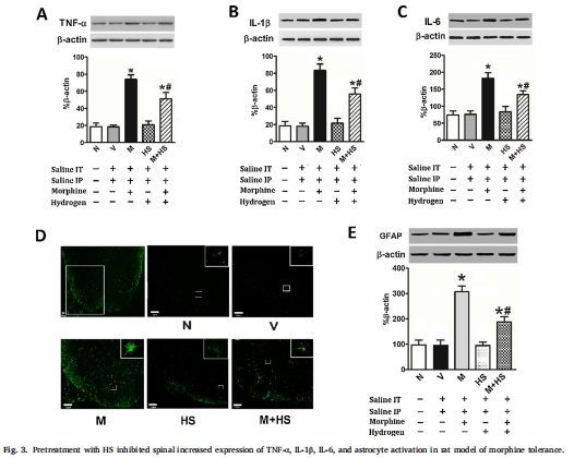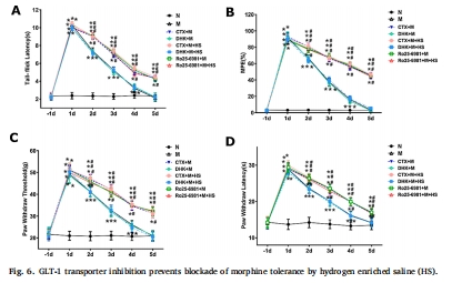 富氫鹽水通過(guò)抑制大鼠脊髓中的神經(jīng)炎癥、GLT-1、GS 硝化和 -NMDA 受體運(yùn)輸和功能來(lái)減輕嗎啡耐受