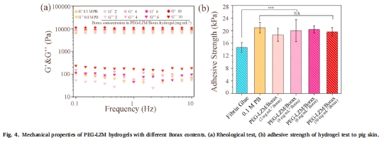 數(shù)據(jù):不同硼砂濃度(2–20 mg/mL)下水凝膠的儲能模量(G')均穩(wěn)定在~1200 Pa(圖4a)。