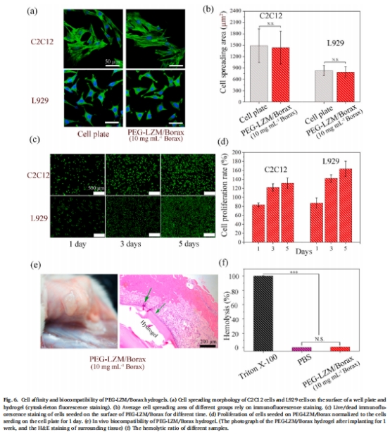 測量植入后凝膠pH(~6.5),解釋無炎癥反應(yīng)原因(圖6e),支持體內(nèi)安全性結(jié)論。