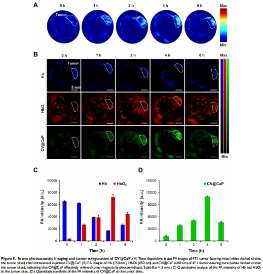 動態(tài)監(jiān)測:光聲成像實時顯示腫瘤氧合改善(圖5B-D)。
