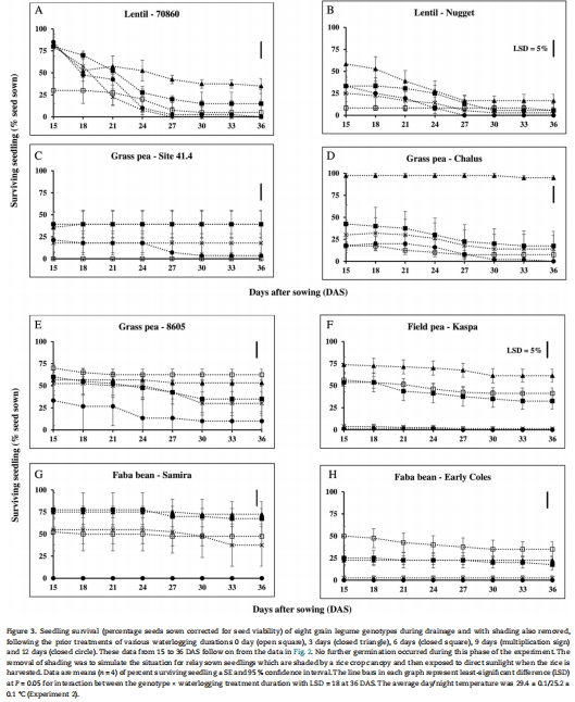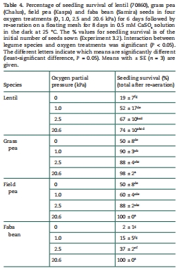 Tolerance of four grain legume species to waterlogging, hypoxia and anoxia at germination and recovery