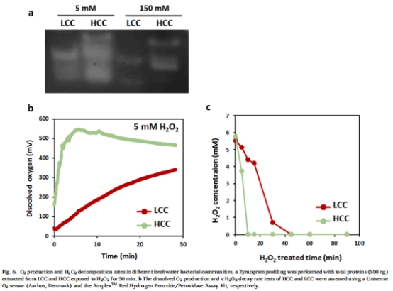 銅綠微囊藻的生存策略:依賴共生細(xì)菌(α-變形菌)的過氧化氫酶抵御H?O?脅迫(圖5-6)。