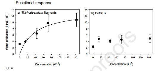 功能響應(yīng)實(shí)驗(束毛藻與碎屑聚集體攝食,圖4)