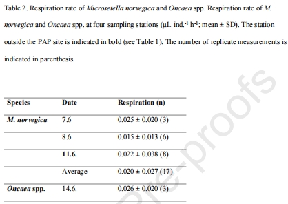 Oncaeaspp.:0.026±0.020 μL O? ind.?1 h?1