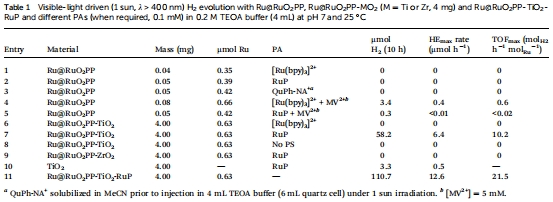 TiO2-mediated visible-light-driven hydrogen evolution by ligand-capped Ru nanoparticles