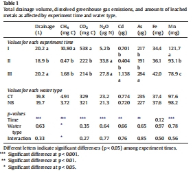 來源:表1(排水總量、溫室氣體排放及重金屬淋溶量);表2(變量間相關(guān)性)。