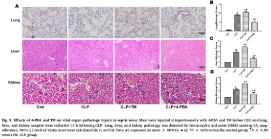 組織病理評分降低(肺/肝/腎損傷評分↓60%)(圖5,10A-C)。