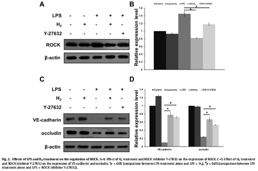 1.H?是膿毒癥ALI的潛在治療劑:通過抑制RhoA活性,維持連接蛋白(Occludin/VE-cadherin)表達和內(nèi)皮屏障功能。