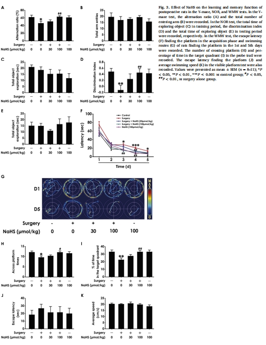 研究首次揭示 外源性H?S(通過供體NaHS) 通過 雙重機制 緩解POCD: