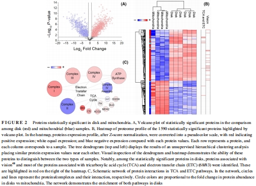 LC-MS/MS鑒定3383種蛋白,OS盤特異性富集1171種(如TCA/ETC蛋白),線粒體富集448種(如復(fù)合物IV組裝因子)。