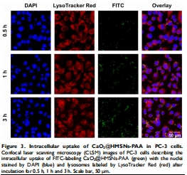 細(xì)胞攝取:CLSM顯示納米顆粒3h內(nèi)富集于溶酶體(圖3);