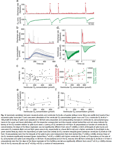 自發神經簇放電(burst)引發瞬態O?消耗增加,幅度與浴液氧濃度正相關(圖4-5)。
