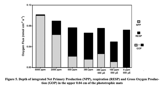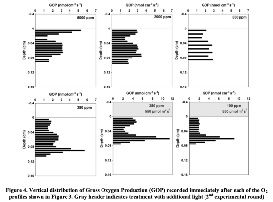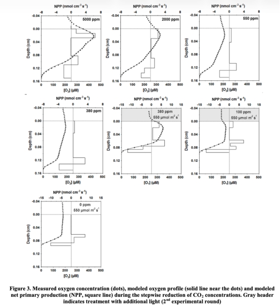? 意義:直接揭示CO?對(duì)氧滲透深度的控制——5000 ppm時(shí)氧達(dá)430 μM(深度>0.08 cm),0 ppm時(shí)僅190 μM(深度<0.04 cm),證明CO?增加促進(jìn)深層光合作用