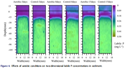 意義:好氧與對照組二維磷分布無顯著差異(圖4),進一步證實好氧條件未改變沉積物內部磷的空間異質性,作用局限于界面附近。