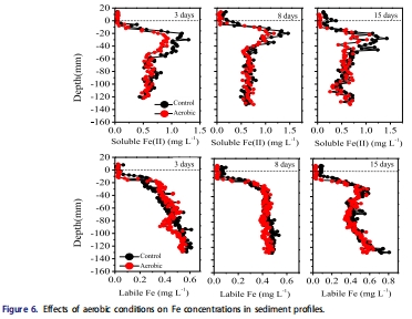意義:好氧處理3天后,表層沉積物(0-0.5 cm)的NaOH-P(鐵鋁結合態磷)顯著增加,其他形態磷無變化。說明好氧促進Fe(II)氧化為Fe(III),增強磷的吸附固定,但該效應未延伸至深層。
