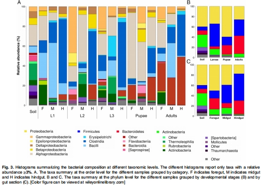 日本金龜子的腸道微生物群是動態變化的。土壤是幼蟲菌群的重要來源,但宿主發育階段和腸道區段是比土壤來源更強大的菌群塑造力。