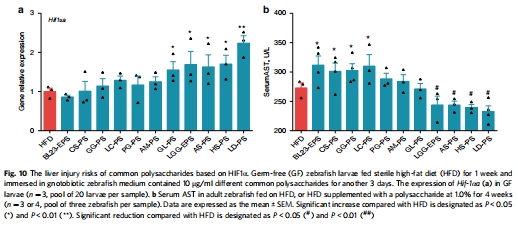 數(shù)據(jù)來源:圖10a-b 測試了9種其他多糖激活HIF1α的能力及其對應(yīng)的肝損傷指標(biāo)(血清AST)。
