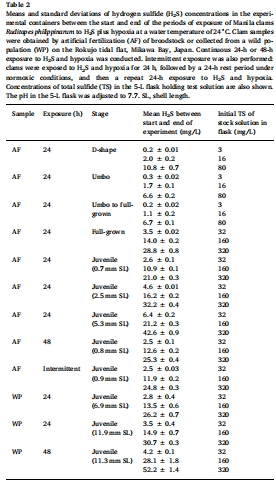 Ontogenetic and temperature-dependent changes in tolerance to hypoxia and hydrogen sulfide during the early life stages of the Manila clam Ruditapes philippinarum
