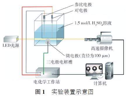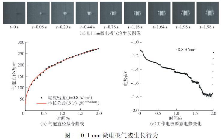 圖2搖0.1 mm微電極氣泡生長行為