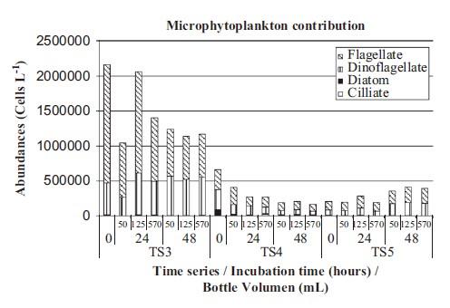 圖3、不同時(shí)間序列實(shí)驗(yàn)中最常見的微型浮游生物群落的貢獻(xiàn)。