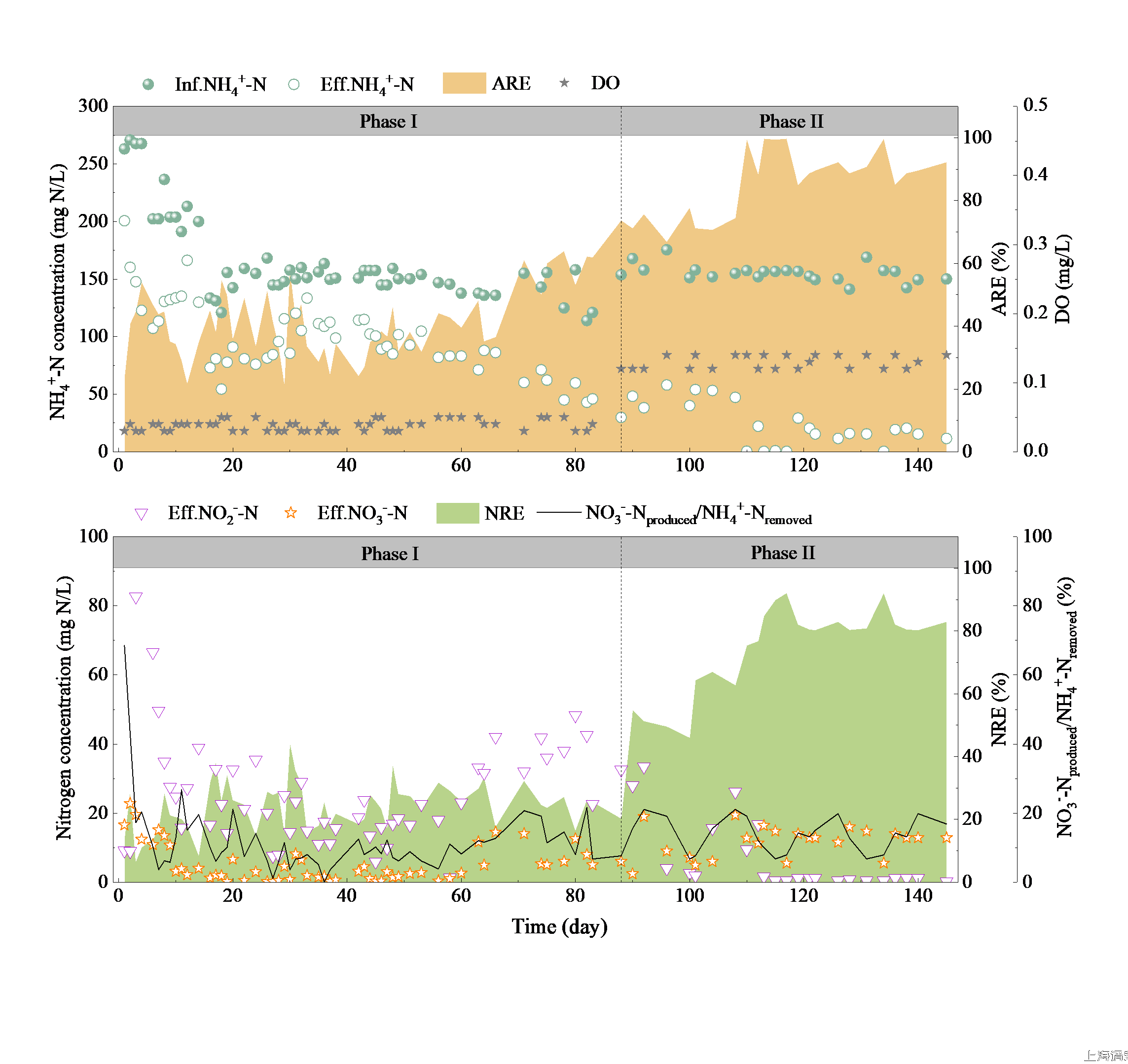 厭氧氨氧化是一項(xiàng)極具前景的生物脫氮工藝,具有污水處理能源自給自足的潛能。目前,大多數(shù)厭氧氨氧化系統(tǒng)的建立需要通過接種厭氧氨氧化污泥實(shí)現(xiàn),然而由于AnAOB生長緩慢,厭氧氨氧化污泥難以大量獲取,限制了該工藝的推廣應(yīng)用。近期有研究發(fā)現(xiàn),AnAOB廣泛存在于污水處理的各個系統(tǒng),并且其對脫氮的貢獻(xiàn)不可忽視,這表明原位富集AnAOB是可行性的。并且,通過合適的運(yùn)行條件,如缺/好氧交替運(yùn)行模式形成的飽食/饑餓條件,可促進(jìn)顆粒污泥的形成,而顆粒污泥也有利于AnAOB的有效持留和富集。因此,推測在傳統(tǒng)的污水處理系統(tǒng)中,如果通過合適的運(yùn)行模式有望培養(yǎng)厭氧氨氧化顆粒污泥,從而實(shí)現(xiàn)AnAOB的原位富集,促進(jìn)厭氧氨氧化工藝的應(yīng)用和推廣。基于此,本研究探究了在傳統(tǒng)硝化-反硝化絮體污泥系統(tǒng)中原位培養(yǎng)厭氧氨氧化顆粒污泥強(qiáng)化污水脫氮的可行性,并分析了相關(guān)機(jī)理。