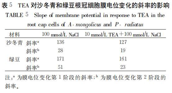 表5 TEA對沙冬青和綠豆根冠細胞膜電位變化的斜率的影響
